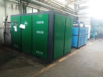 ZLS-2iC永磁變頻第三代二級壓縮空壓機,型號:ZLS-2iC 功率:22-250kW 特點:雙電機獨立驅動、雙變頻器控制、零齒輪傳動。 ZLS-2Di永磁變頻二級低壓壓縮空壓機 ,型號:ZLS–2Di 功率:22-160kW 特點:雙電機獨立驅動,降低轉子間泄露,增加產氣量。變頻器內部控制獨立控制各級壓力變速器直接在一體變頻器上。 ZLS-2i永磁變頻二級壓縮空壓機 ,型號:ZLS20-350-2i 功率:22-250kW 特點:同軸直聯結構,一體化齒輪傳動方式、液冷式電殼機體冷卻系統,殼體上均布冷卻管道,降低永磁電機內部溫度,把溫度恒定在70度-80度。